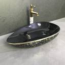 Premium Quality Ceramic Wash Basin: delicate and solid ceramic with crystalline glaze Ideal for Both Home & Commercial use Size :- 22 x 13 x 5 inch Colour :- black & Gold glossy finish Package Includes :- Only 1 Wash Basin Product Type : Bathroom Wash Basin / Table Top Designer Wash Basin With Tap Hole/ Over Counter Vessel Sink For Washroom