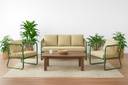 METALIQUE Metal Sofa Set (3+1+1) Traditional Look | Comfortable & Breathable Seating Fabric 3 + 1 + 1 Sofa Set (Golden, Pre-assembled)