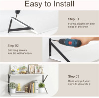 Sporting a straightforward assembly design, these shelves can be installed quickly using the included brackets. Additionally, the process involves fixing the brackets on both sides, drilling long screws into the wall anchors, and placing items on the shelf for use. The shelves themselves are made of durable wood, offering a natural finish and strong support. Moreover, the uncomplicated installation makes it suitable for DIY projects, allowing users to set up functional storage without professional help.