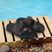 Men Flats Sandal (Black , 5)