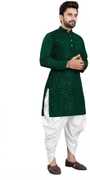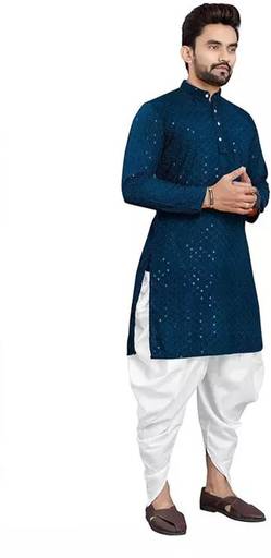 Men's Kurta Dhoti Lucknowi Mirror Work Style Chikan Embroidered