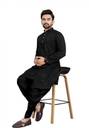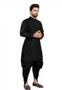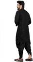 Elevate your ethnic wardrobe with this premium black sequin-embroidered kurta with dhoti pant set for men. Crafted from high-quality fabric, this outfit blends traditional elegance with contemporary flair. The shimmering sequin detailing adds a festive touch, perfect for weddings, receptions, sangeet, Diwali, Eid, or any grand celebration. The mandarin collar, full sleeves, and front-button closure offer a classic look, while the stylish black dhoti pant completes the regal ensemble. Designed for the modern man who values comfort and class, this readymade kurta set ensures a perfect fit and graceful silhouette. Color: Black Style: Kurta with dhoti-style pant Work: Sequin embroidery Fabric: Soft and breathable Fit Type: Regular Fit Ideal for: Weddings, Parties, Festivals Sizes Available: M, L, XL, XXL Wash Care: Dry Clean for best results Set Contents: 1 Kurta and 1 Dhoti Pant Color Options: Available in Black, Navy Blue, Rama, Yellow, Dark Green, Wine Material: Premium Soft Silk Blend with Sequin Embroidery Fit Type: Regular Fit with Side Slits for Comfort Neck Type: Mandarin Collar with Button Placket Ideal For: Wedding, Festive, Traditional Events, and Parties Wash Care: Dry Clean Recommended for Long-lasting Shine Sizes Available: M, L, XL, XXL