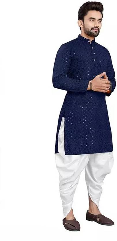 Men's Kurta Dhoti Lucknowi Mirror Work Style Chikan Embroidered