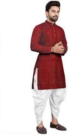 Lucknowi Kurta Dhoti Set Men's Mirror Work Chikan Chikankari Full Embroidery or Embroidered Kurta Full Premium Quality Schiffli works New Style Black Yellow Red Wine Maroon Rama Blue Navyblue Colour