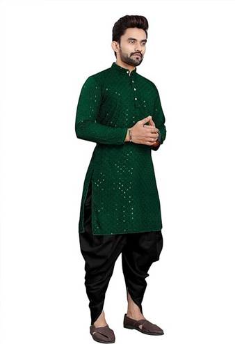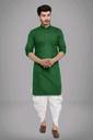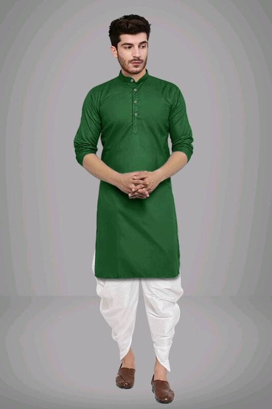D green Plain Kurta White Dhoti Mens