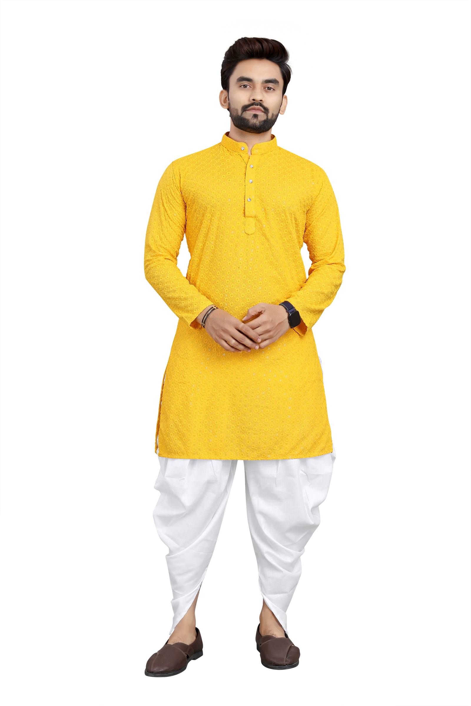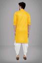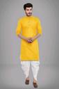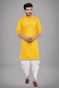 Yellow Plain Kurta White Dhoti Mens