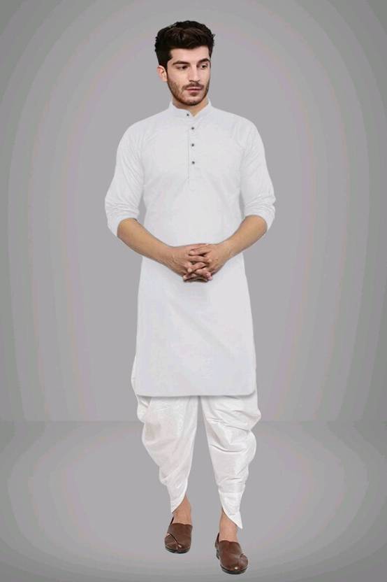 White Plain Kurta White Dhoti Mens