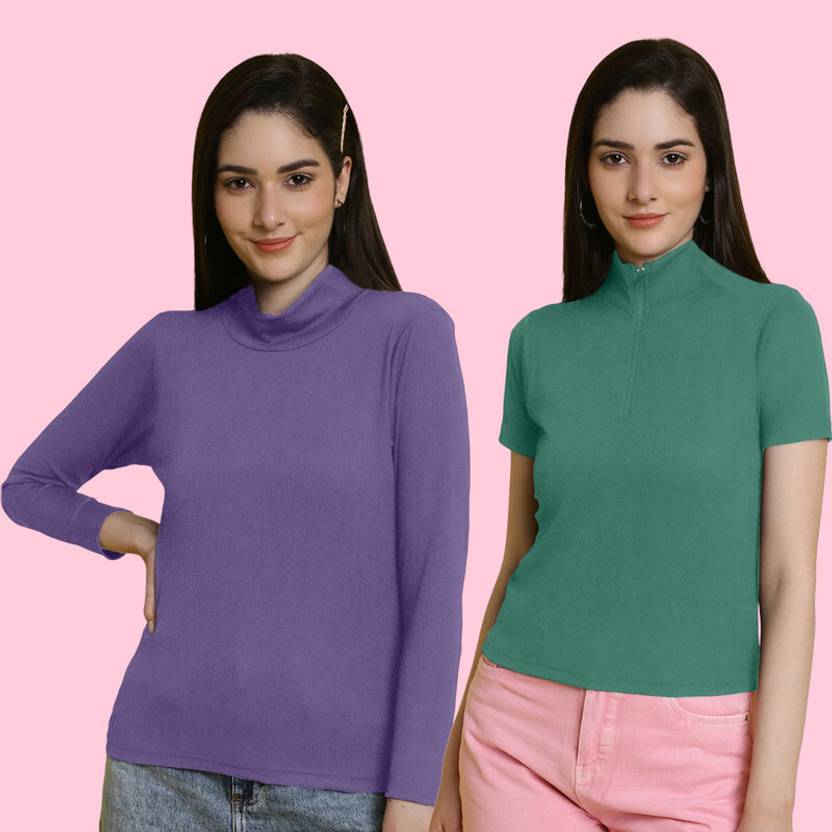 METRONAUT Pack of 2 Casual Regular Sleeves Solid Women Green, Purple Top