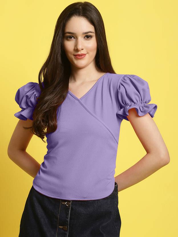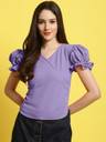 METRONAUT Casual Puff Sleeves Solid Women Purple Top
