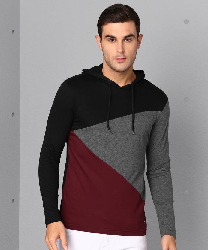 METRONAUT Colorblock Men Hooded Neck Multicolor T-Shirt