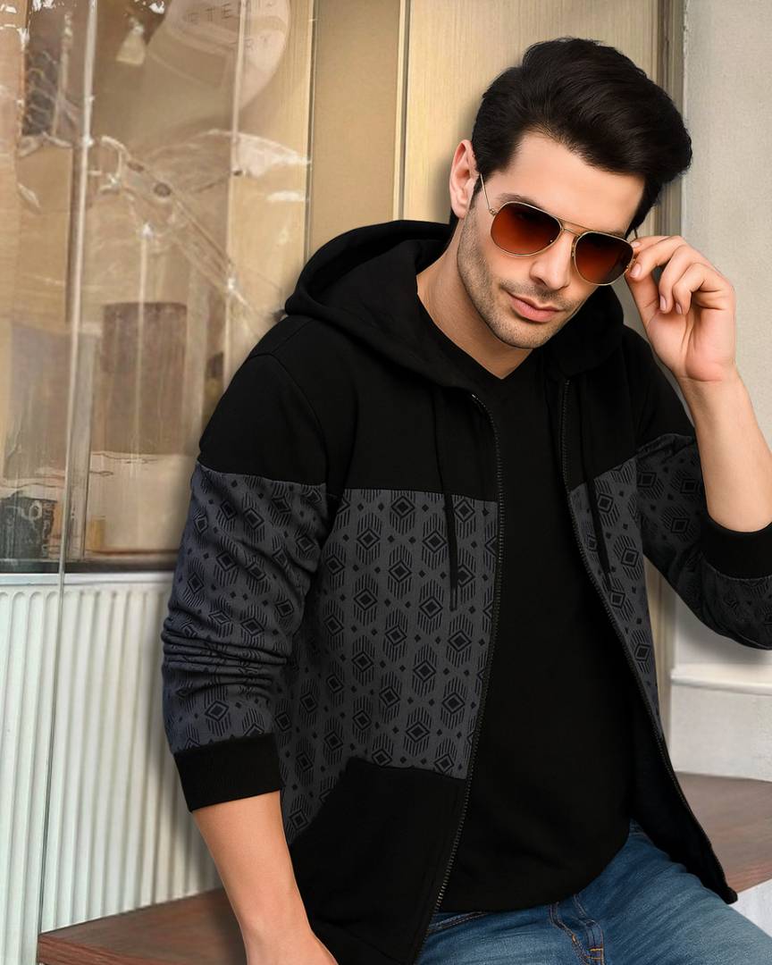 Material Type: Fleece Cotton, Pattern: Printed/Colourblock, Fit Type: Regular Fit