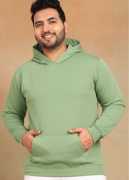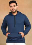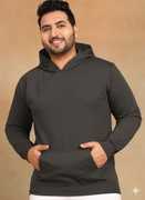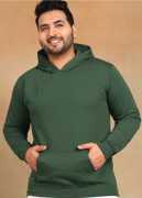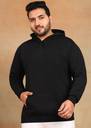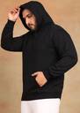 Plus Size - Men's Full Sleeve Solid Black Hooded Sweatshirt