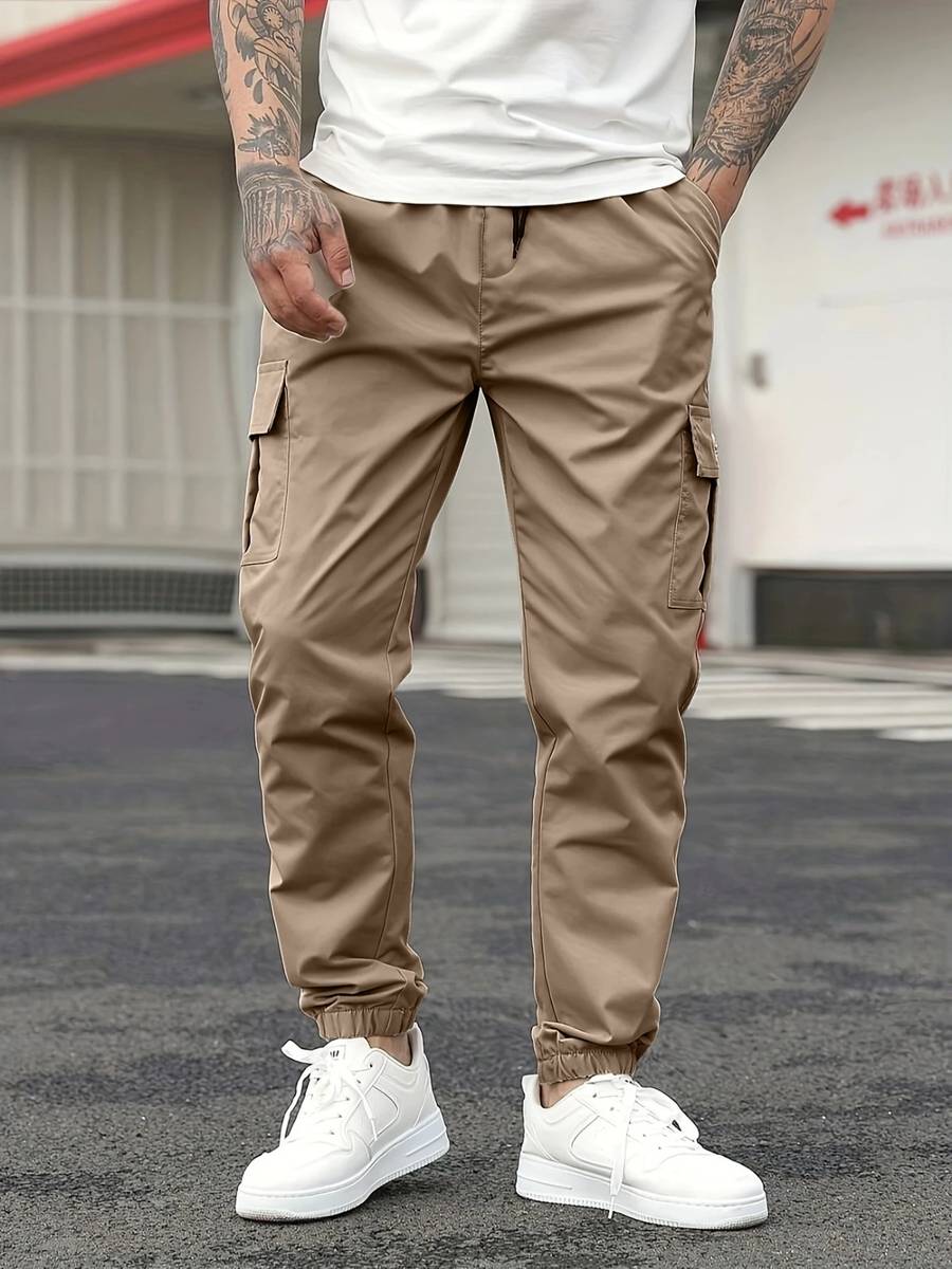 This is a colorblock stylish cargo featuring a drawstring & designed with a flat-front styling and multi pockets. It is a stylish casual cargo pant that can be styled to fit a casual look.