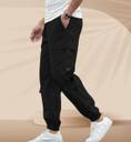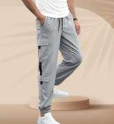 These men’s cargo joggers feature breathable fabric, multiple utility pockets, an elastic waistband with drawstring, and cuffed hems, making them stylish, comfortable, and practical for daily wear.