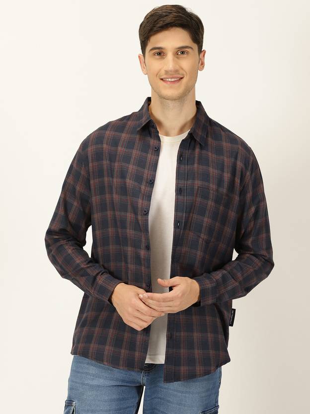 METRONAUT Men Slim Fit Checkered Spread Collar Casual Shirt