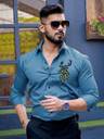 METRONAUT Men Printed Casual Blue Shirt