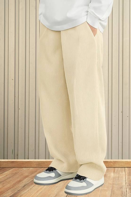 Elevate your casual wardrobe with these stylish pleated trousers. Designed for comfort and modern flair, these pants feature a relaxed fit with finely textured vertical pleats that enhance movement and give a unique look. Made from a lightweight, breathable fabric, they pair effortlessly with sneakers or casual shoes. The side pockets add functionality, while the loose fit and full-length design offer all-day ease.