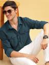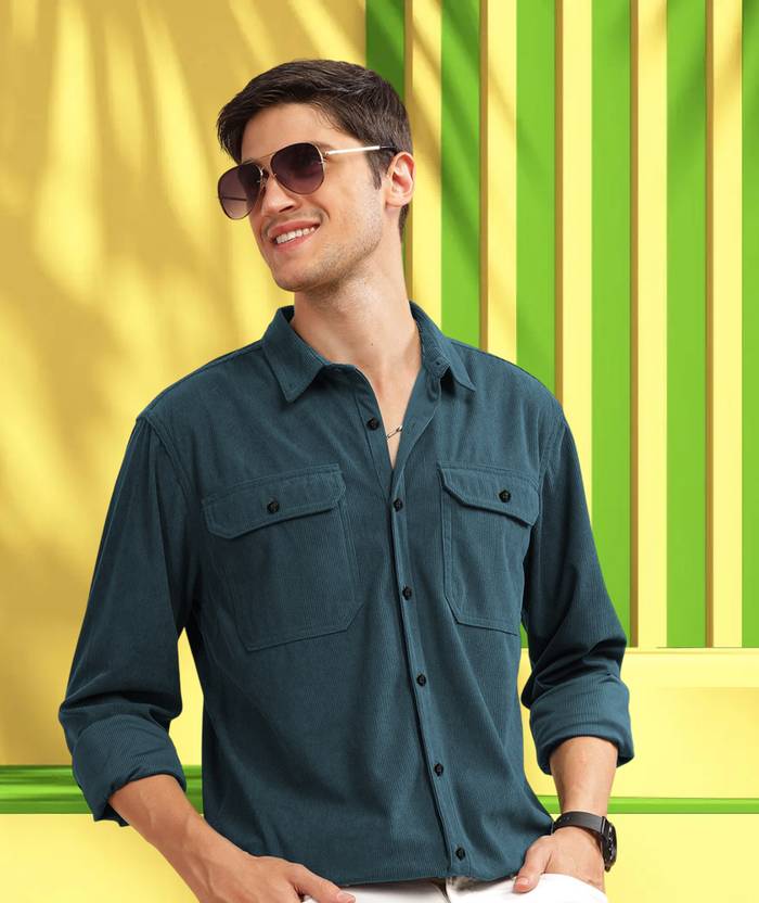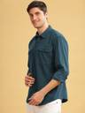 Men Slim Fit Self Design Spread Collar Casual Shirt
