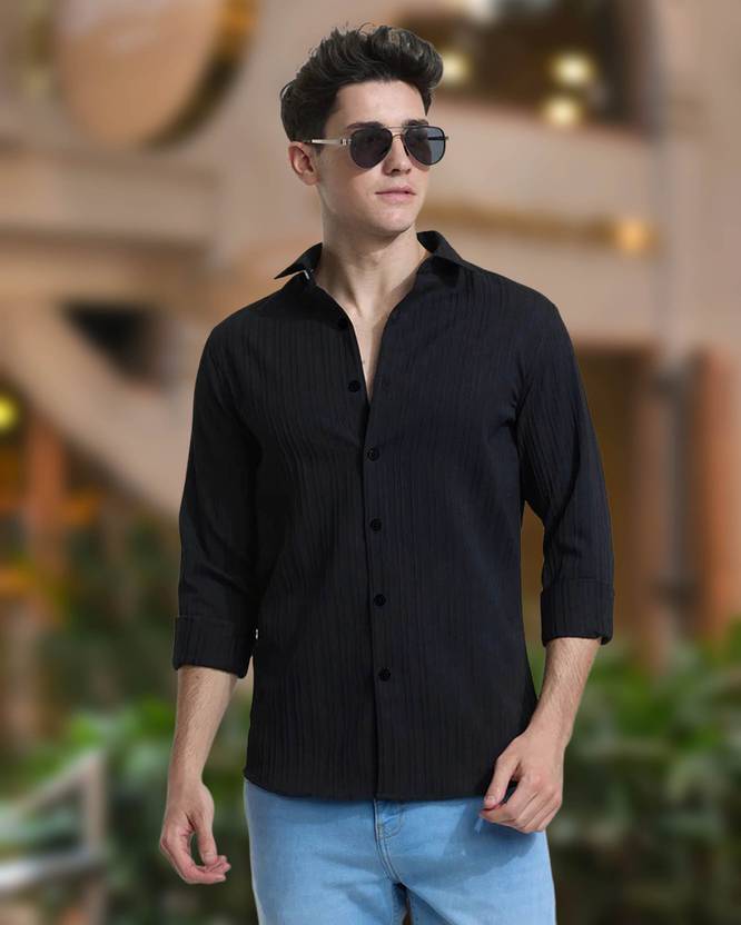 METRONAUT Men Solid Casual Black Shirt