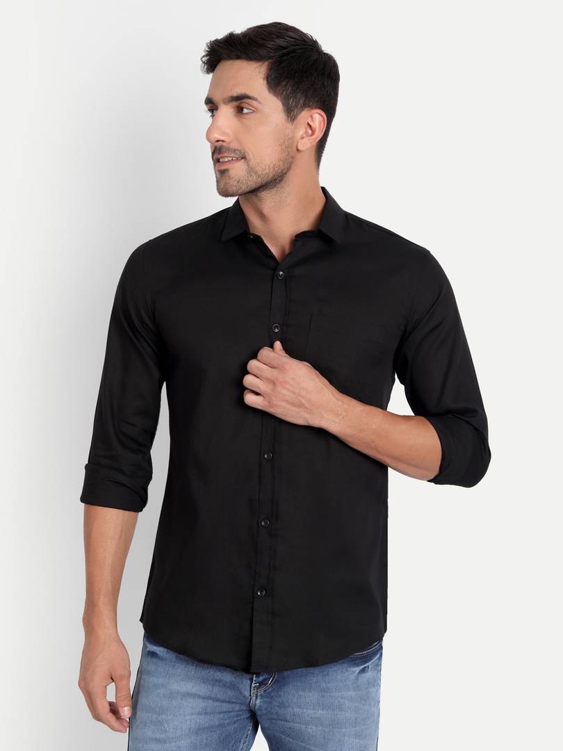Men Regular Fit Solid Spread Collar Casual Shirt
