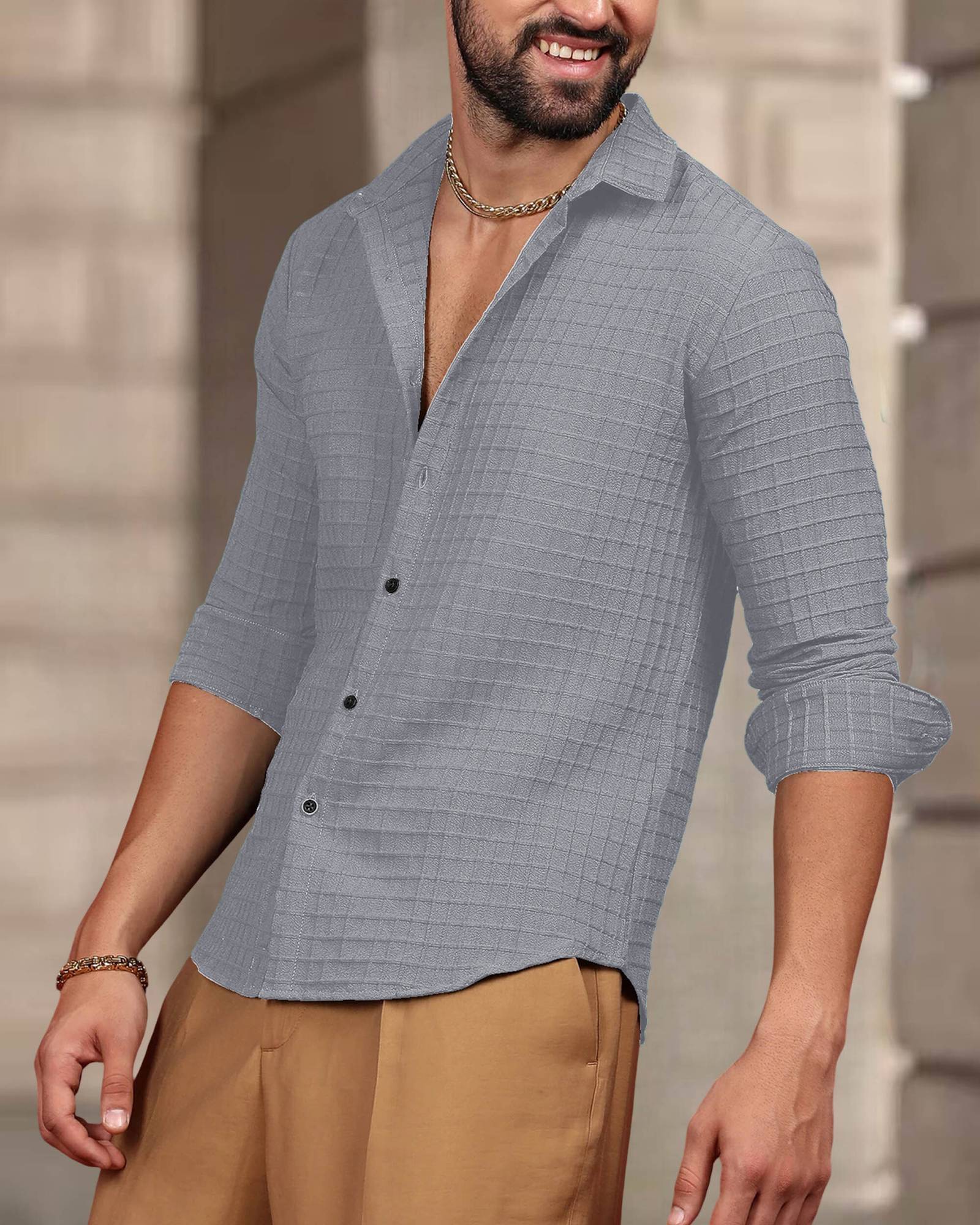 METRONAUT Men Solid Casual Grey Shirt