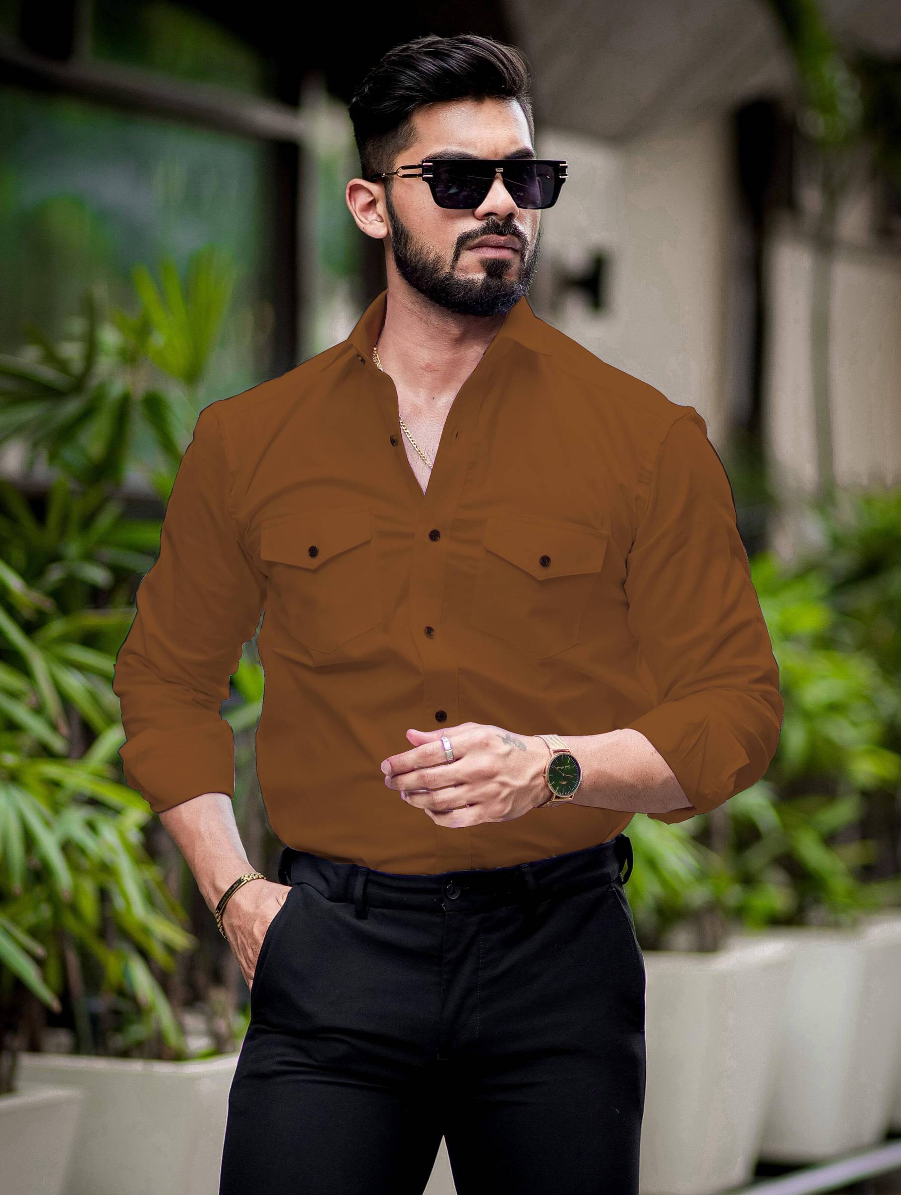 METRONAUT Men Solid Casual Brown Shirt