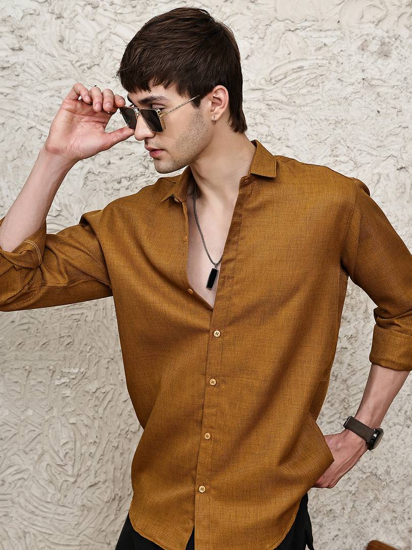 METRONAUT Men Solid Casual Brown Shirt