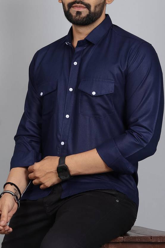 METRONAUT Men Solid Casual Dark Blue Shirt