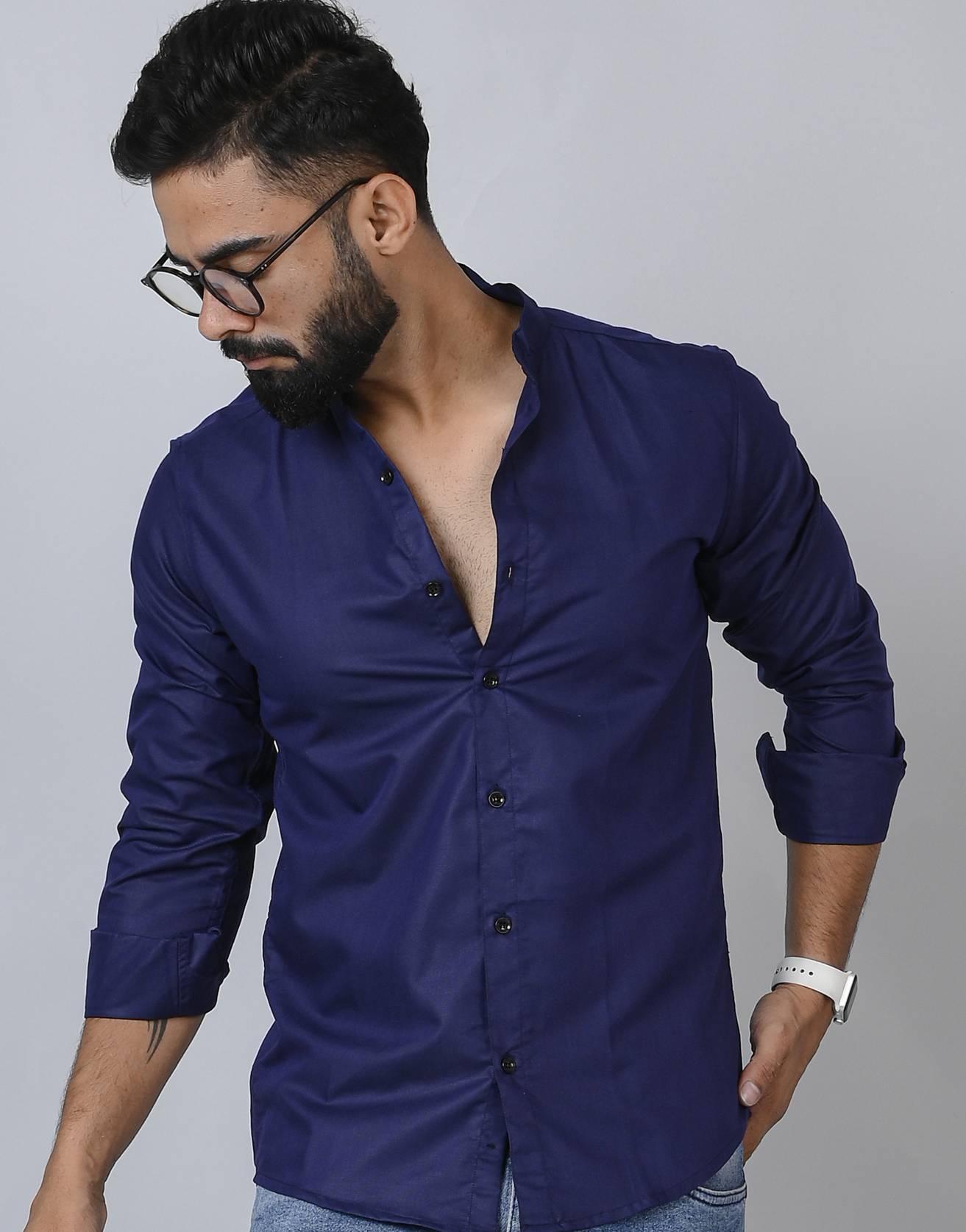 METRONAUT Men Solid Casual Dark Blue Shirt