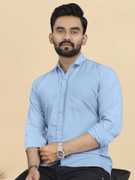 METRONAUT Men Solid Casual Light Blue Shirt