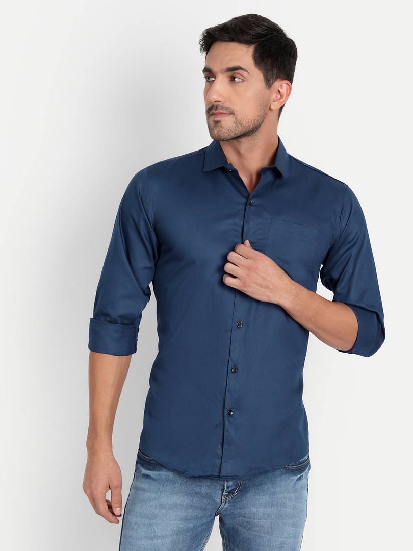 Men Regular Fit Solid Spread Collar Casual Shirt