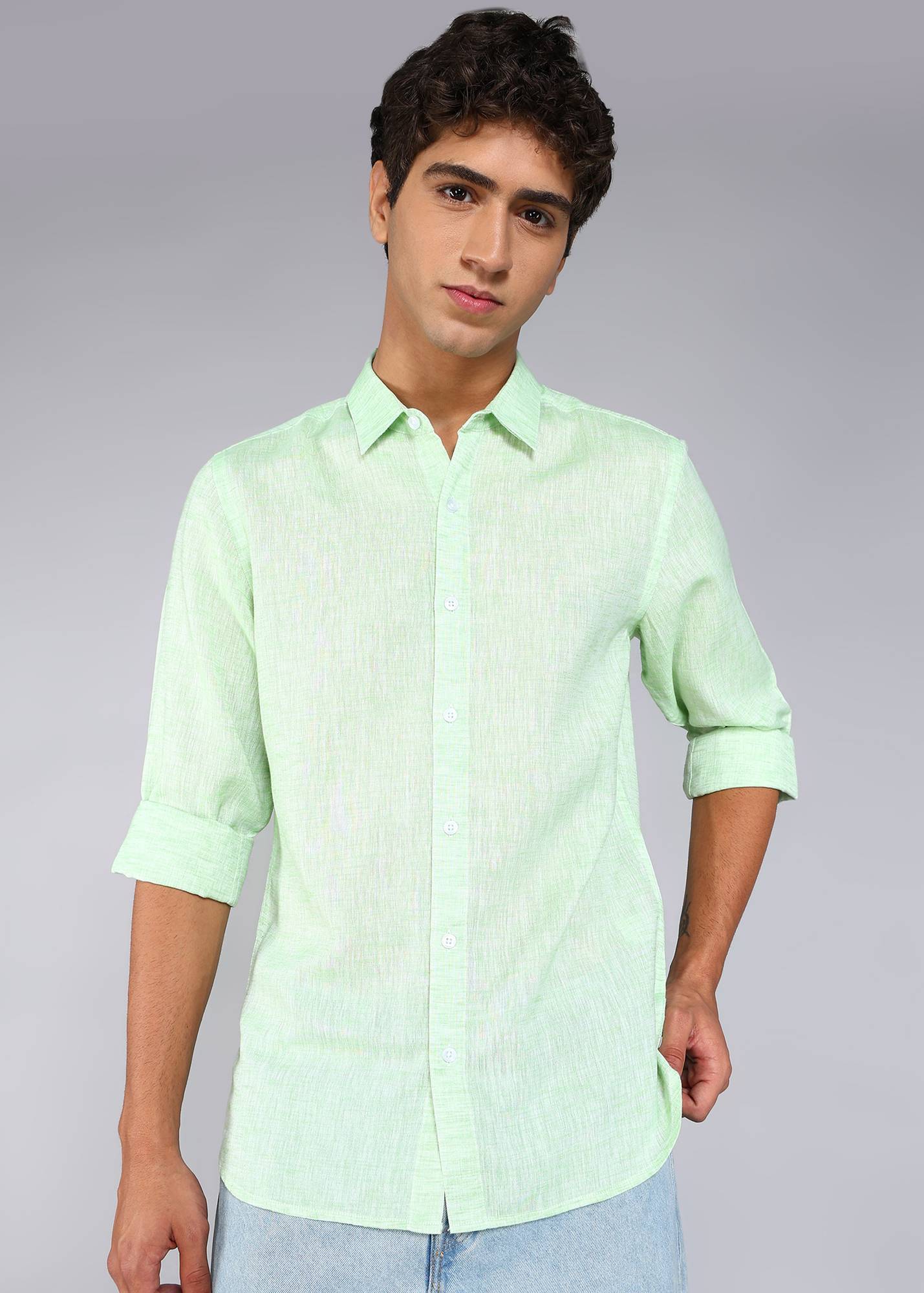 Men Regular Fit Solid Spread Collar Casual Shirt
