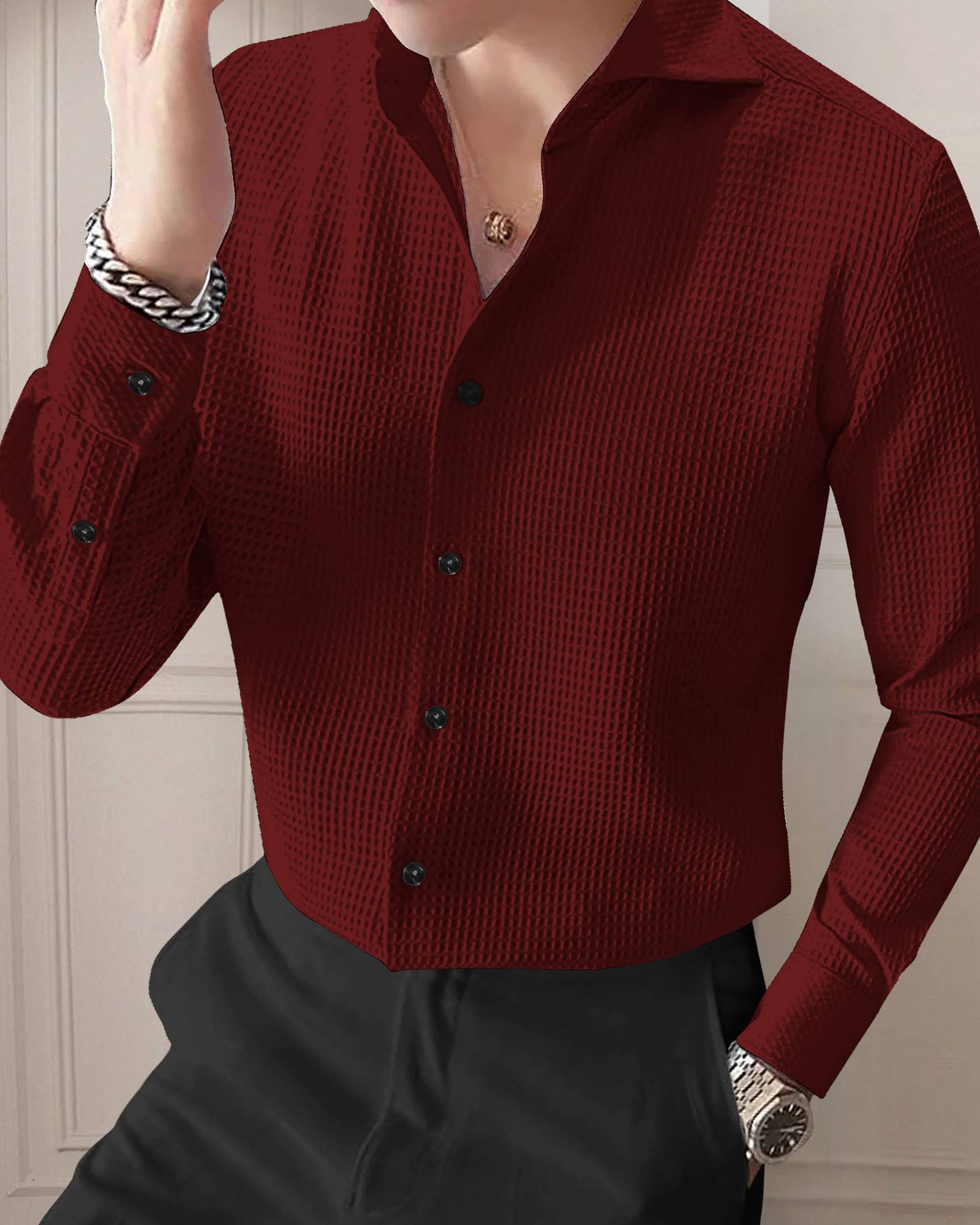 METRONAUT Men Solid Casual Maroon Shirt