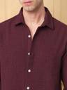 METRONAUT Men Solid Casual Maroon Shirt