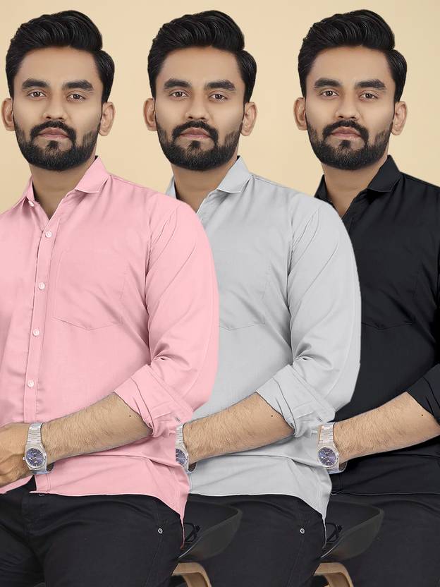 METRONAUT Men Regular Fit Solid Spread Collar Casual Shirt  (Pack of 3)