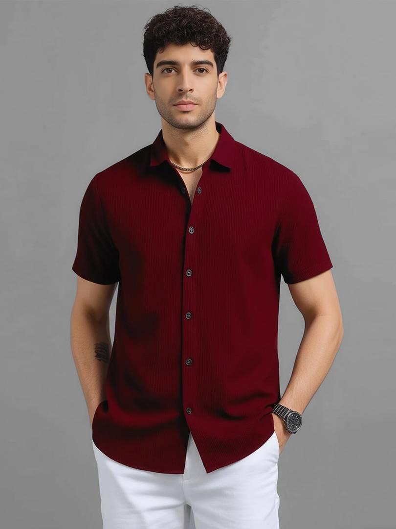 Men Regular Fit Solid Spread Collar Casual Shirt