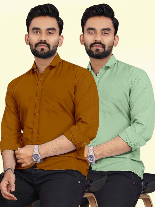 Men Regular Fit Solid Spread Collar Casual Shirt (Pack of 2)