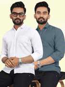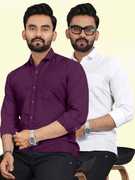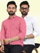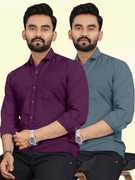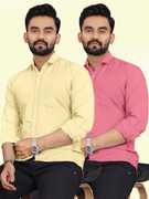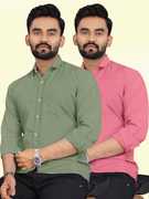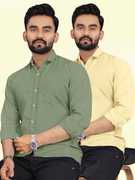 Men Regular Fit Solid Spread Collar Casual Shirt (Pack of 2)