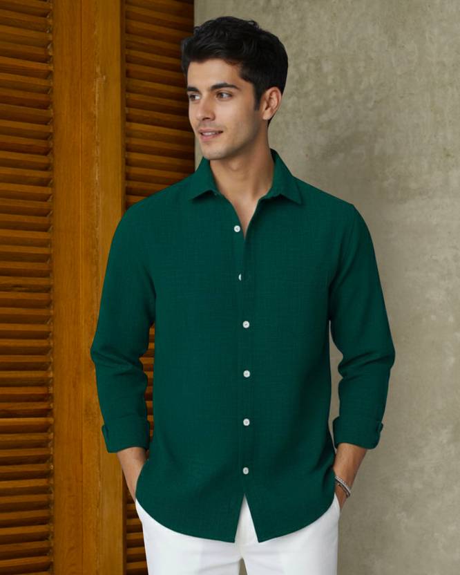 Men Regular Fit Solid Spread Collar Casual Shirt
