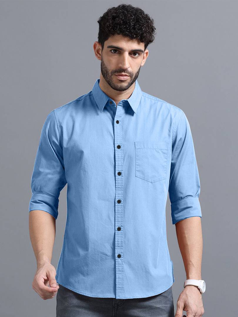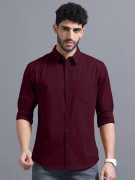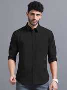 Men Regular Fit Solid Spread Collar Casual Shirt