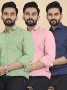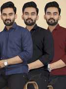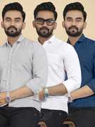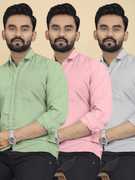 Men Regular Fit Solid Spread Collar Casual Shirt (Pack of 3)