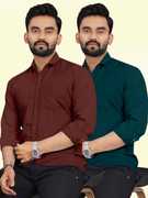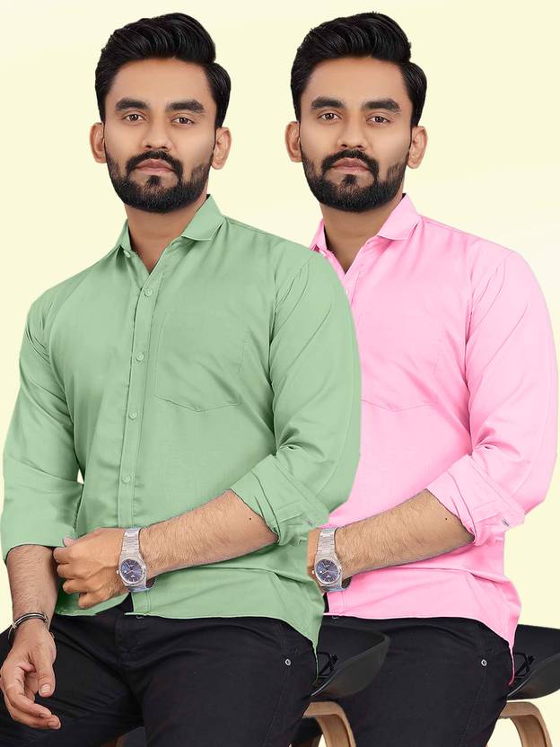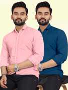 Men Regular Fit Solid Spread Collar Casual Shirt (Pack of 2)