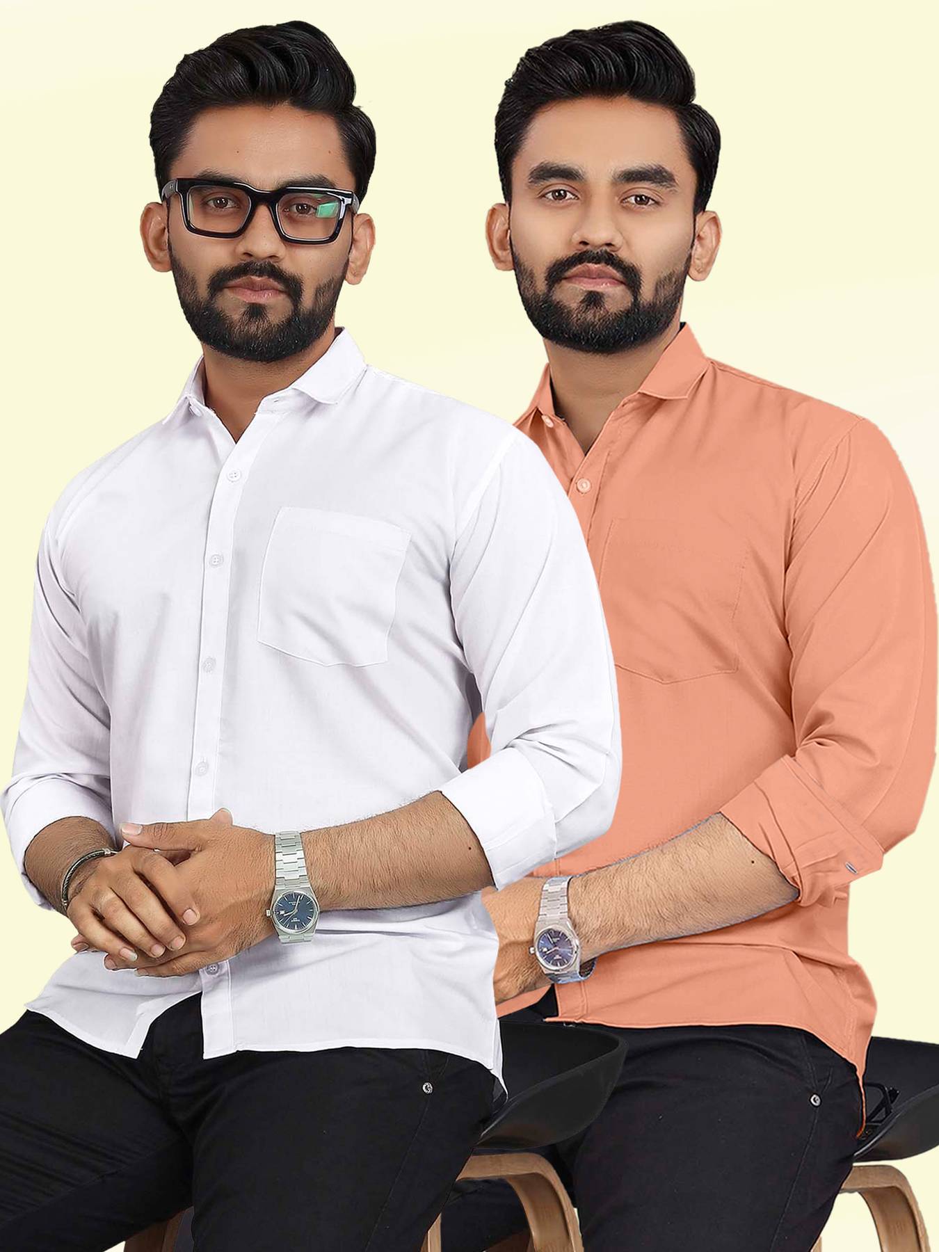 Men Regular Fit Solid Spread Collar Casual Shirt (Pack of 2)