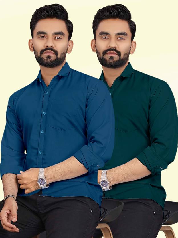 Men Regular Fit Solid Spread Collar Casual Shirt (Pack of 2)