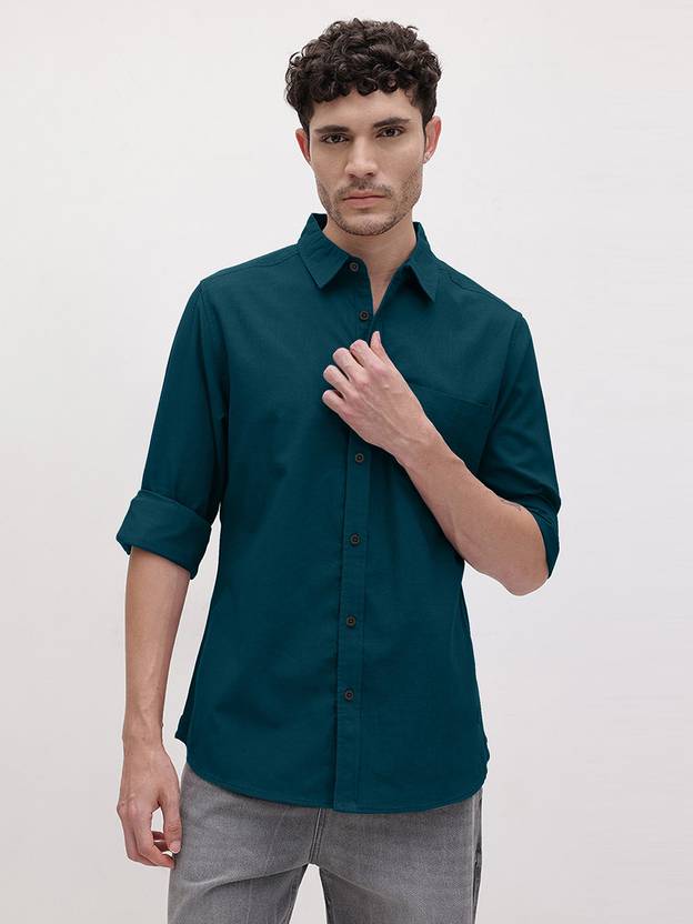 Men Regular Fit Solid Spread Collar Casual Shirt