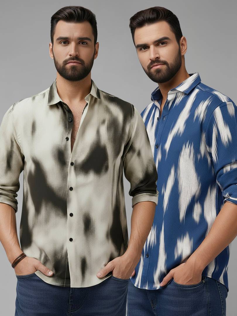 Men Regular Fit Solid Spread Collar Casual Shirt (Pack of 2)
