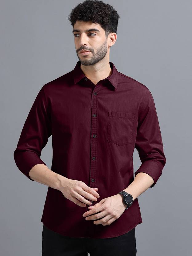 Men Regular Fit Solid Spread Collar Casual Shirt
