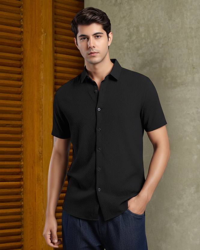 Men Regular Fit Solid Spread Collar Casual Shirt