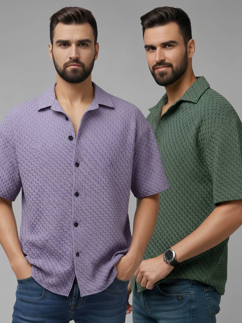 Men Regular Fit Solid Spread Collar Casual Shirt (Pack of 2)