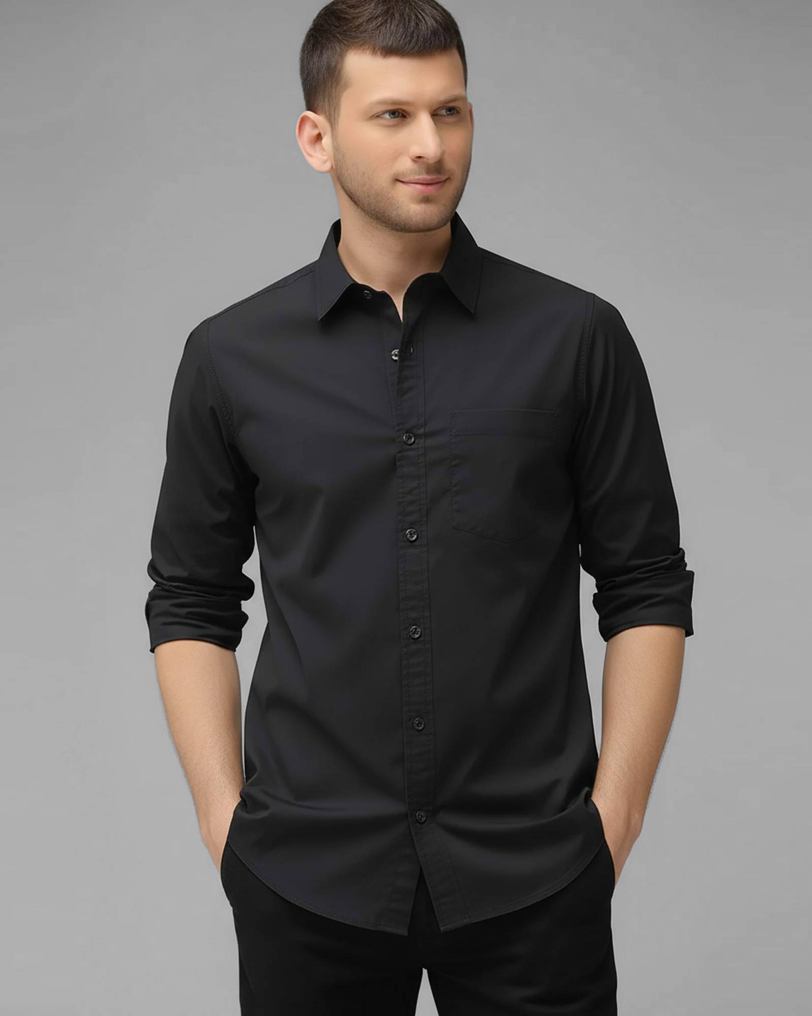 Men Regular Fit Solid Spread Collar Casual Shirt
